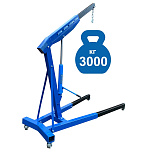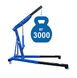 Для профессионального применения. Грузоподъемность 3т. Не складной. Высота подъема 330-2450 мм. Предназначен для подъема и транспортировки автомобильных узлов, агрегатов и любых других грузов как внутри помещения так и на улице. Вынос стрелы регулируется в соответствии с максимальной грузоподъемностью крана – 1000-3000кг. Рабочим приводом крана является гидроцилиндр.