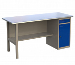 Верстак однотумбовый поставляется в разобранном виде. Нагрузка на столешницу до 600 кг. Стандартный цвет: корпус - серый глянец RAL 7030, ящики и двери тумб - синий RAL 5017. Размеры:855x1400x700 мм. Вес: 79 кг.