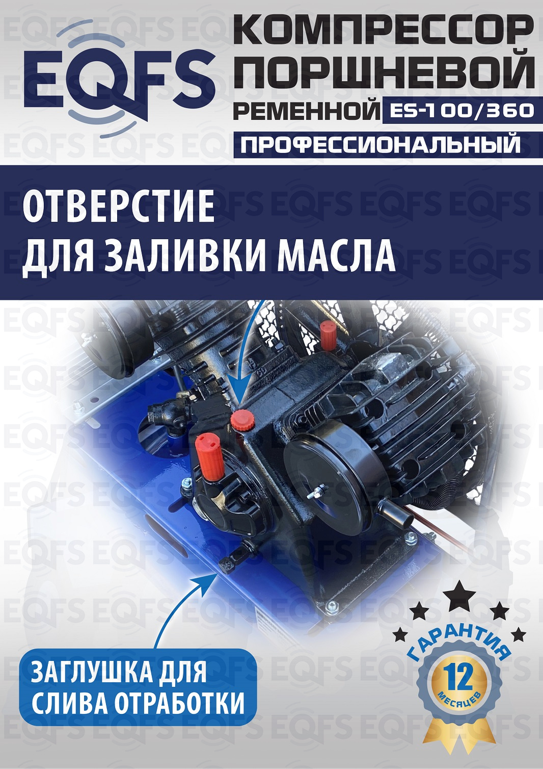 Компрессор воздушный, передвижной, поршневой, масляный, двухцилиндровый. Быстро достигает нужного давления. Двухпоршневая головка двигателя уменьшает износ деталей и увеличивает срок службы. Ремённый привод — предохранят мотор от поломки. Идеальное решение для небольшой мастерской, шиномонтажа, гаража или дачи. Давление 8 Атм. Производительность 360 л/мин. Мощность 2.2 кВт. Напряжение 220В. Ёмкость ресивера 100 л. Гарантия 12 месяцев.
