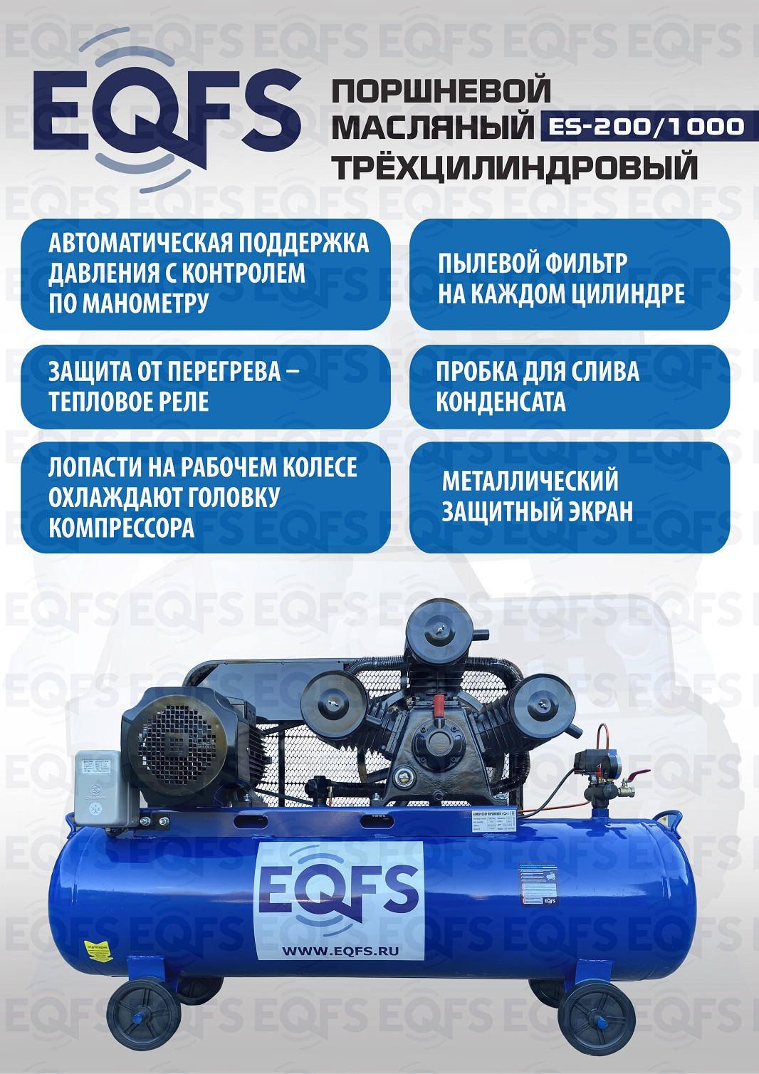 Технические особенности компрессор поршневой ES-200/1000 (4 кВт):