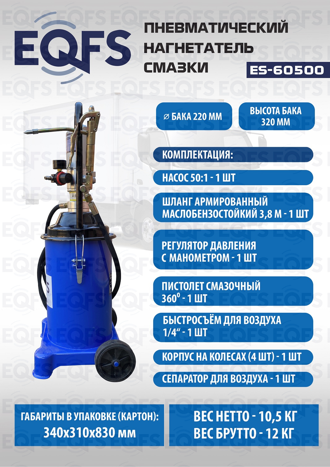 ES-60500 Нагнетатель смазки пневматический 12 кг