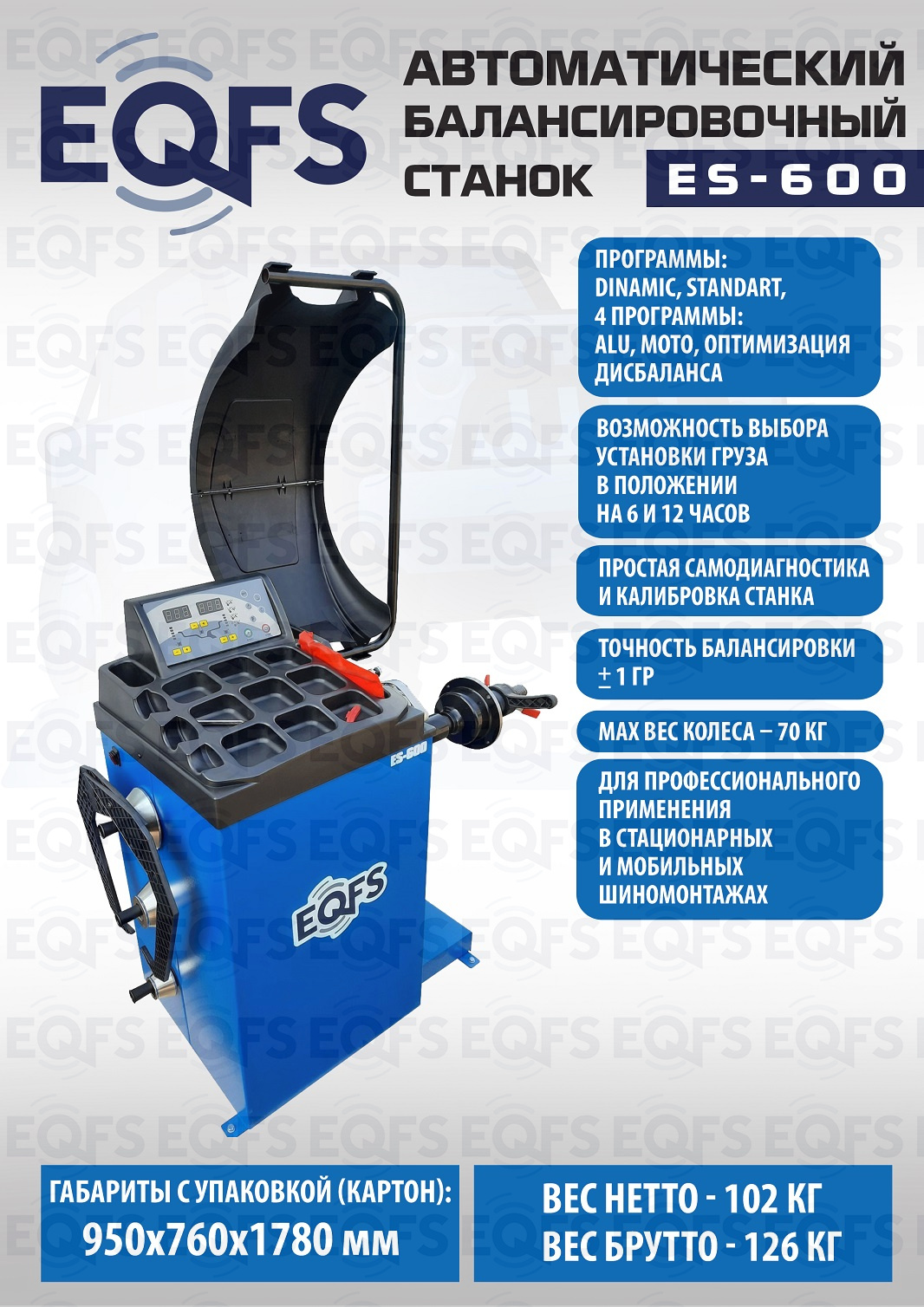 ES-600 Автоматический балансировочный станок. Для балансировки колёс легковых автомобилей, мотоциклов и лёгких грузовиков с диаметром диска с резиной до 800 мм. Размеры диска: ширина 3–10” (76-254 мм) , диаметр диска 10–24” (254÷609 мм). Прочный вал Ø - 40мм. Гарантия 18 мес – наш монтаж, 12 мес – самостоятельная установка. В комплекте: кожух с автозапуском + клещи + кронциркуль + быстрозажимная гайка + набор конусов.