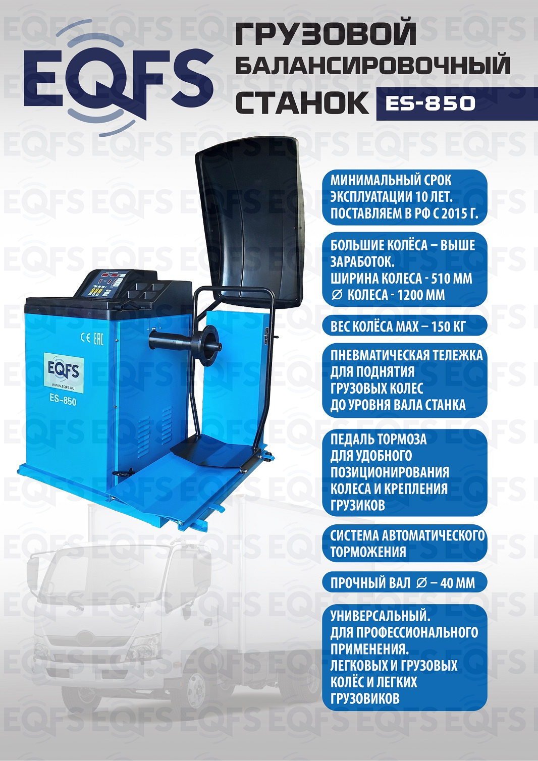 ES-850 Балансировочный станок для балансировки колес легковых и грузовых автомобилей. Колесо «в сборе» Ø до 1200 мм, вес до 150 кг. Диски Ø 13-24” ширина 1,5-20”, подключение 380 В. Встроенный пневмоподъемник. Гарантия до 18 мес.