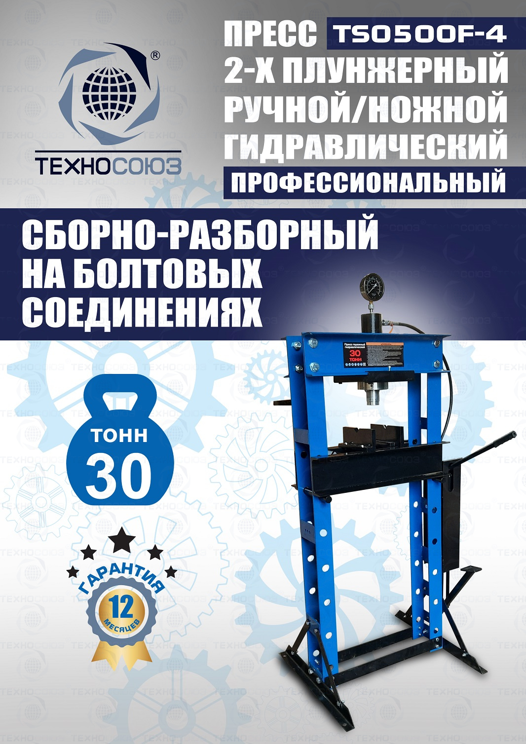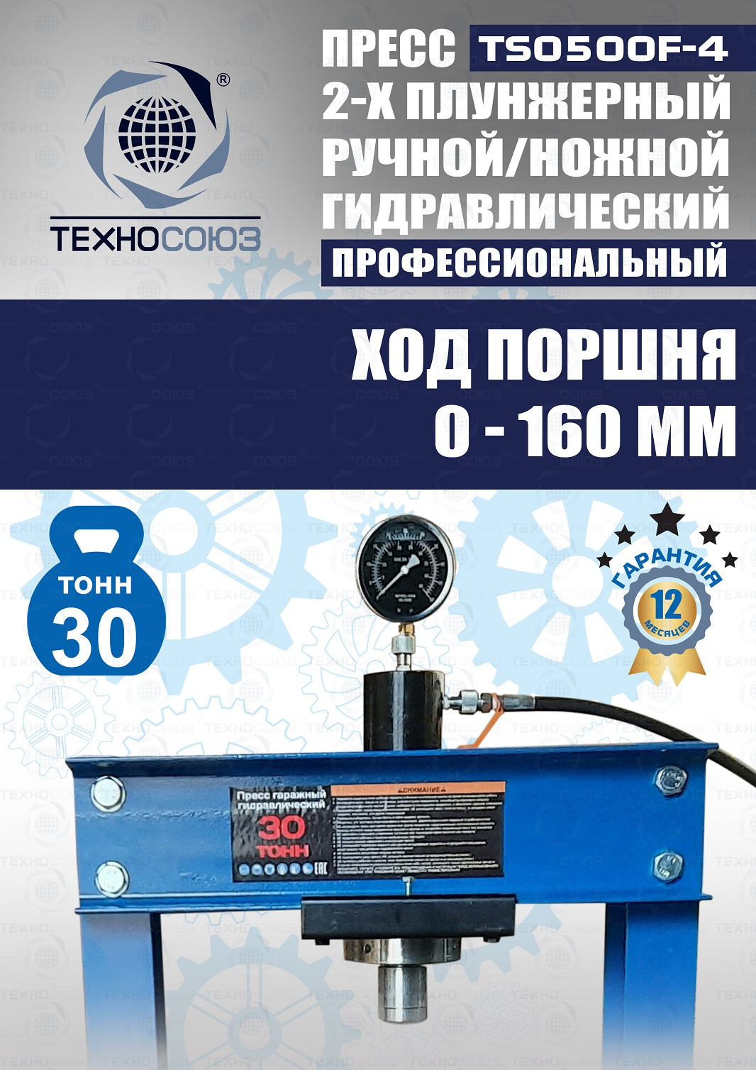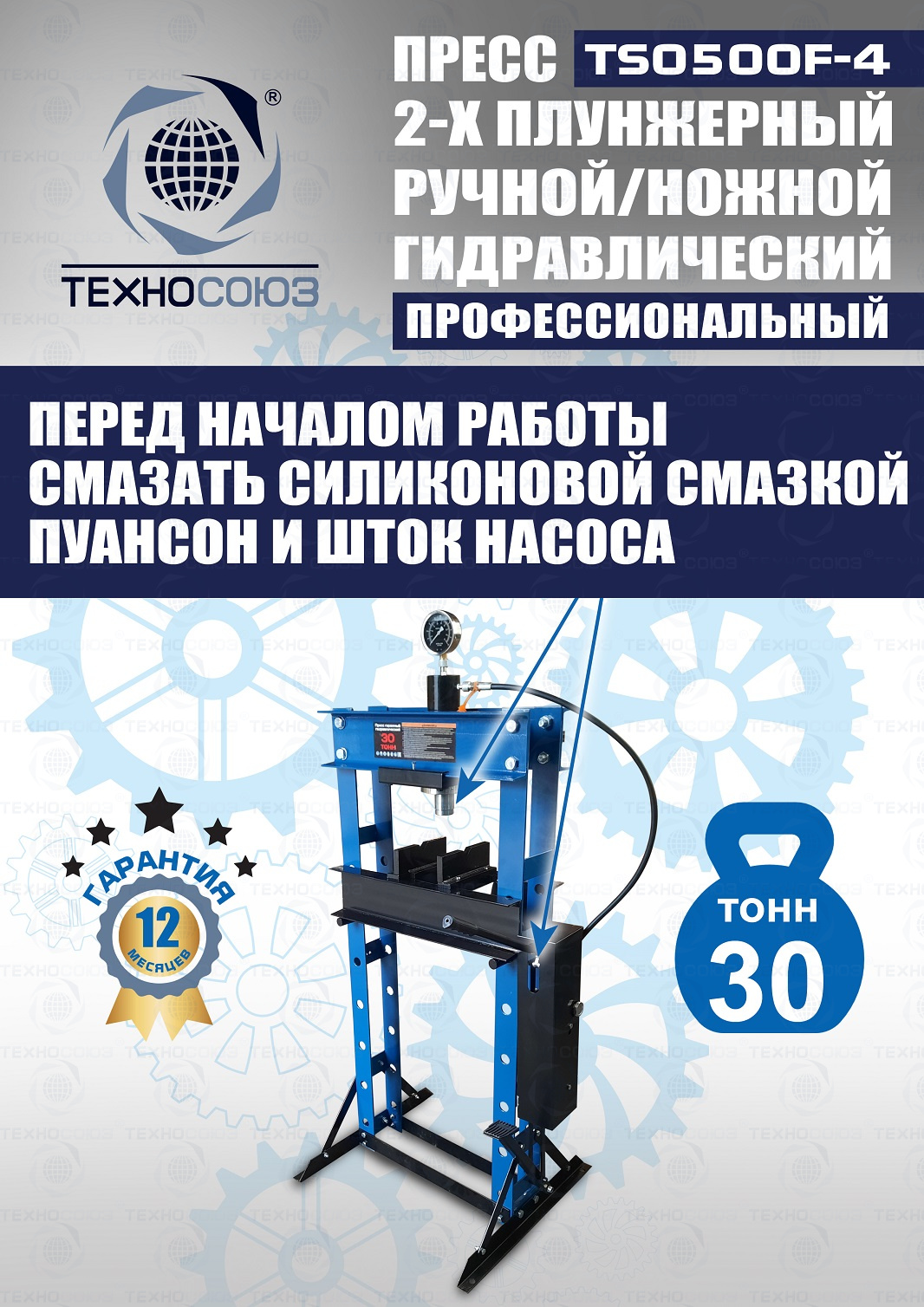 TS0500F-4 Пресс гидравлический ручной/ножной, 30 тонн