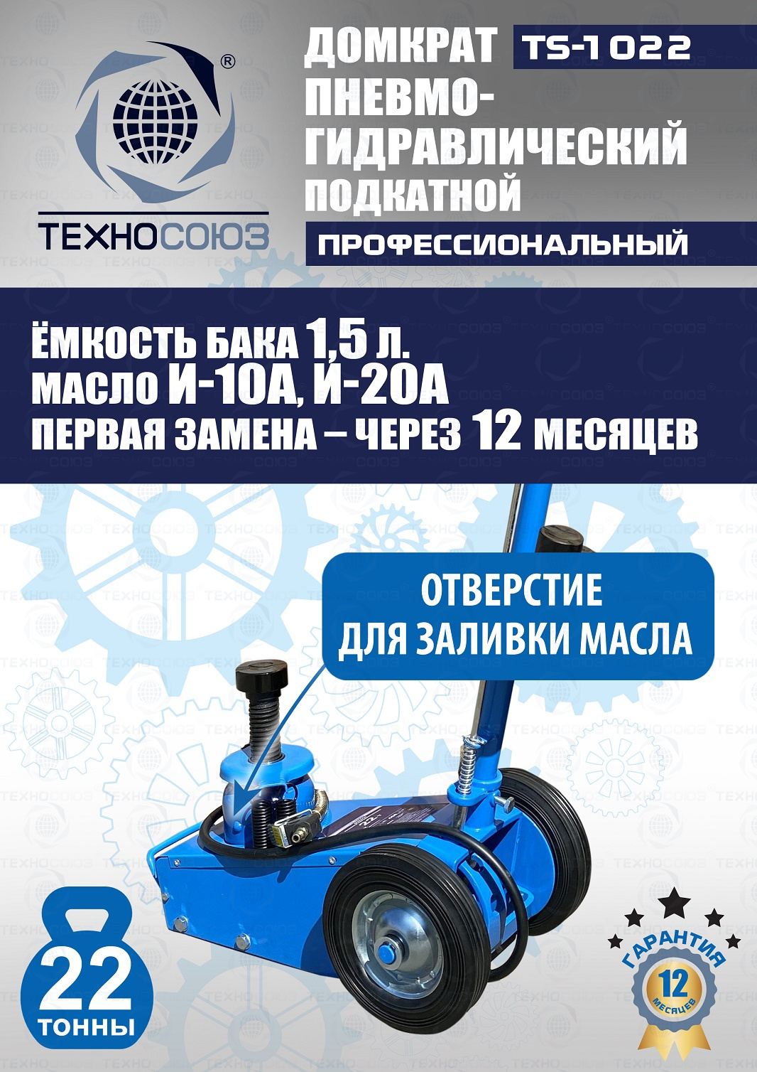 Технические особенности TS-1022 пневмогидравлический подкатной грузовой домкрат: