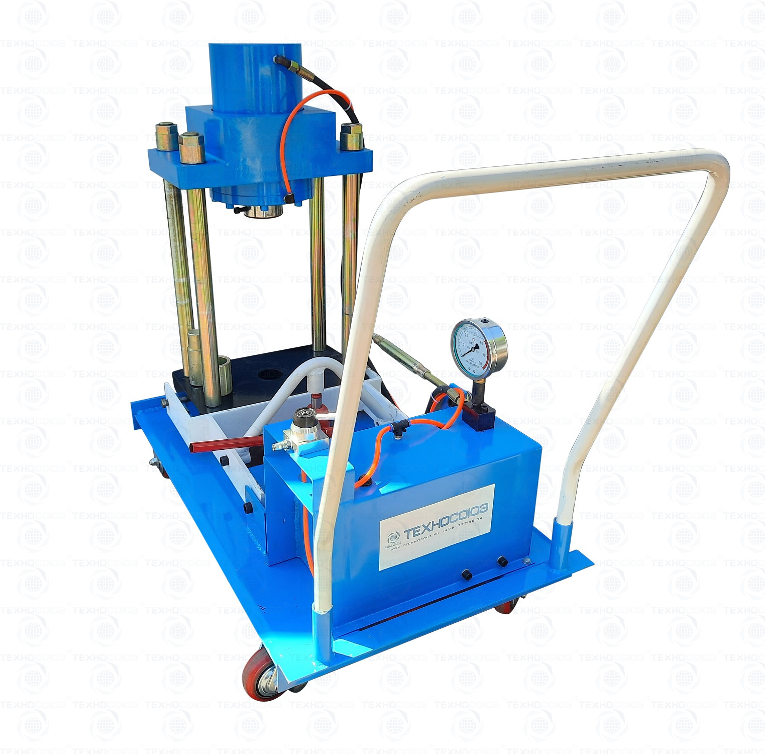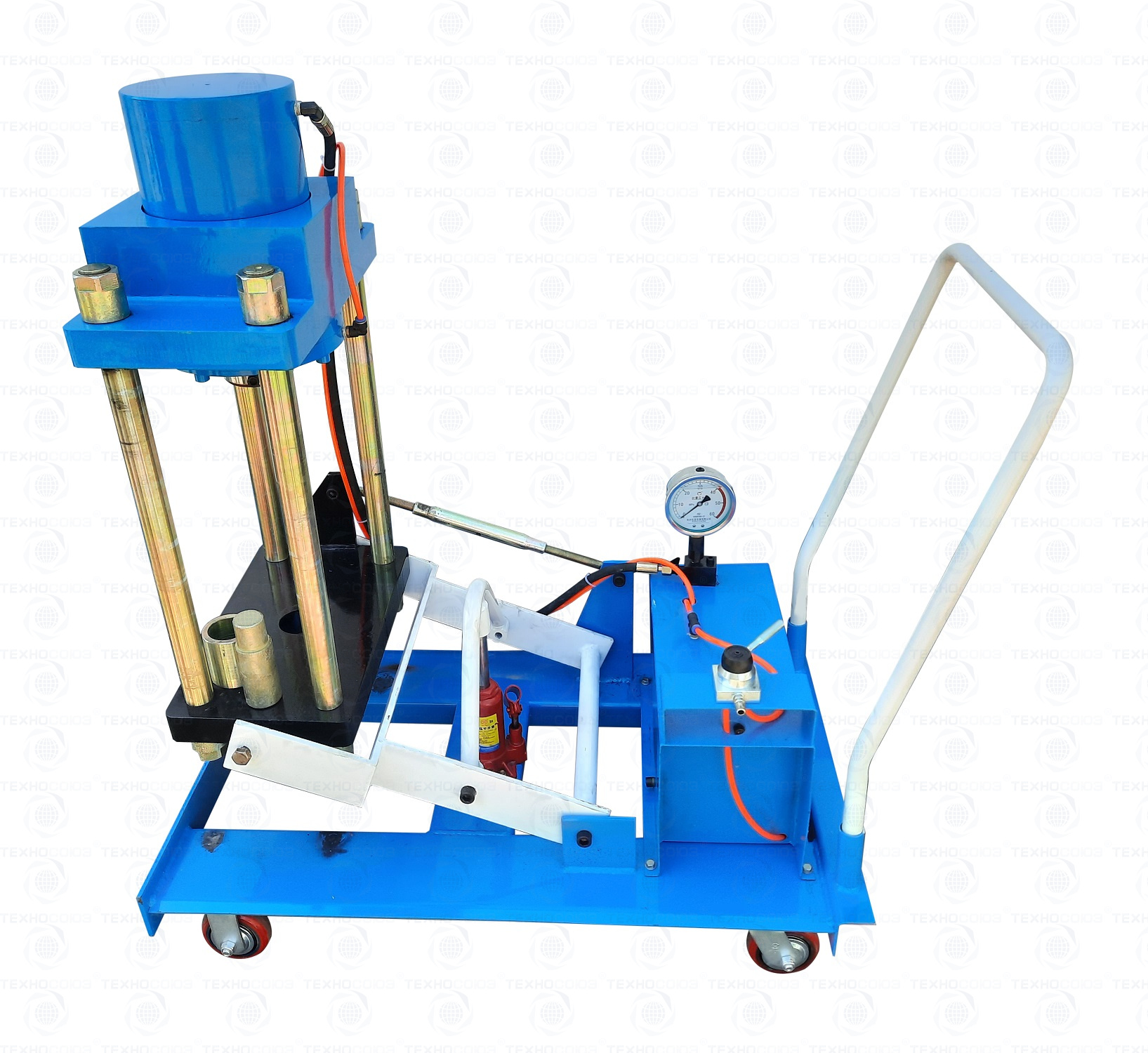 Надежные прорезиненные колеса позволят перемещать шкворнедав по любой поверхности