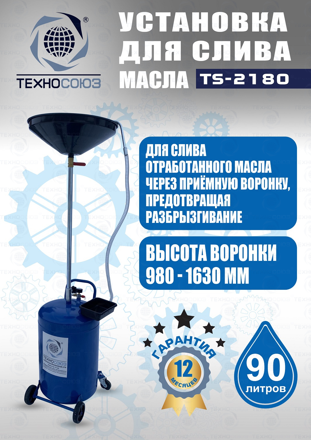 Для слива «отработки» самотёком из любых транспортных средств. Ёмкость бака 80л.+10л. приёмная воронка. Регулировка высоты чаши 980-1630мм. Визуальный контроль уровня заполняемости бака. Слив собранной в баке «отработки» самотёком или под давлением. Лоток для сливной пробки/инструмента. Для применения в гараже, автосервисе, предприятии.